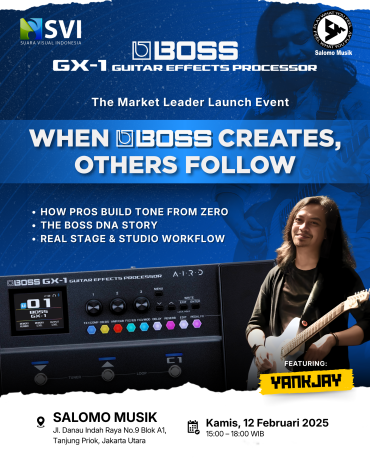 Materi yang relevan, Launch Event Boss GX-1 2026 menjadi kesempatan berharga bagi gitaris dan pelaku industri musik untuk mengenal lebih dekat inovasi terbaru dari BOSS bersama distributor resminya, SVI Suara Visual Indonesia.